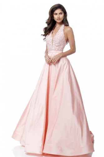 Vestido Princesa, Cuello Halter, Escote V profundo, Espalda descubierta/ Graduación/ Boda / Princess V neck halter dress, backless with lace Prom, Bridesmaid