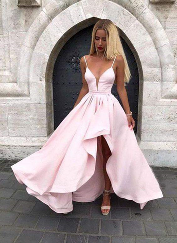 Vestido Princesa, Escote V profundo, Tirantes, Abierta en pierna/ Graduación/ Noche / Princess high low, V neck dress