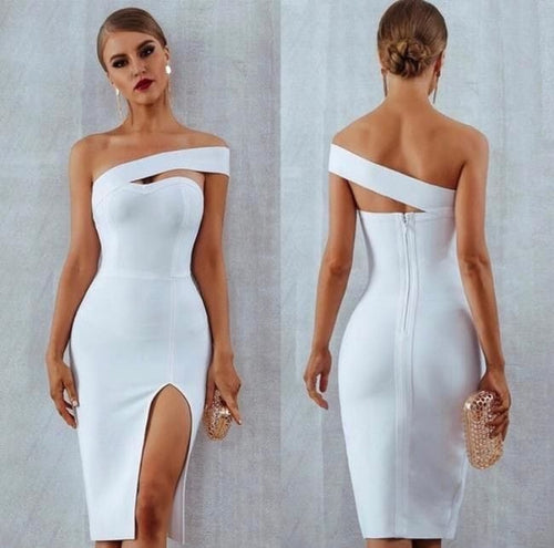 Vestido ceñido un hombro Midi, coctel, formal, casual/ Sweetheart one shoulder Fitted Midi Dress, cocktail, formal, casual .